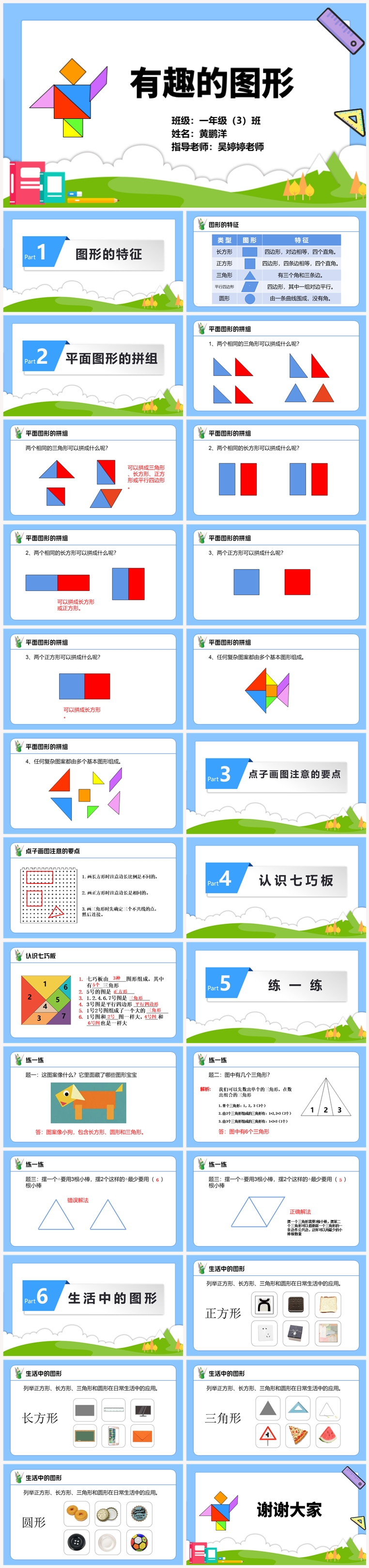 答:图案像小狗,包含长方形、圆形和三角形。。