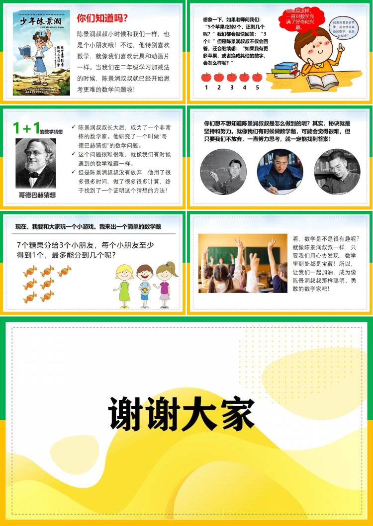 看,数学是不是很有趣呢?就像陈景润叔叔一样,只要我们用心去发现,数学里到处都是宝藏!所以,让我们一起加油,成为像陈景润叔叔那样聪明、勇敢的数学家吧!