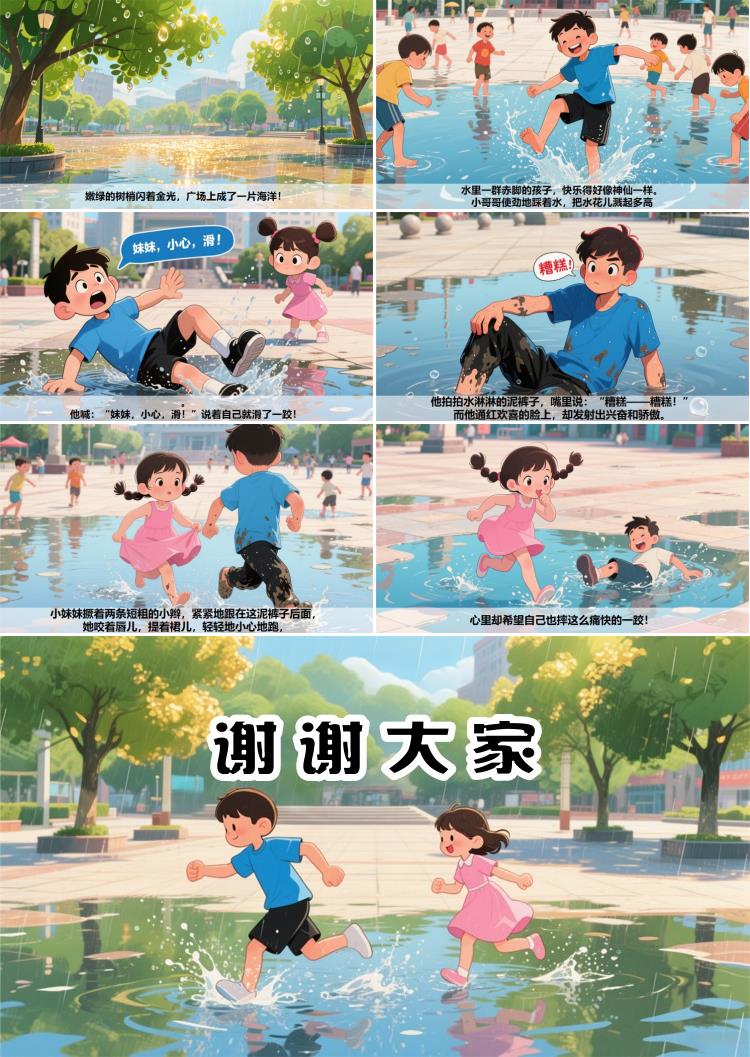 小哥哥使劲地踩着水,把水花儿溅起多高。
