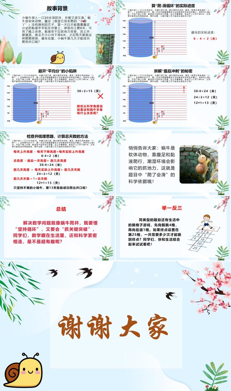 解决数学问题就像蜗牛爬井,既要懂“坚持循环”,又要会“抓关键突破”,同学们,数学藏在生活里,还和科学紧密相连,是不是超有趣呢?