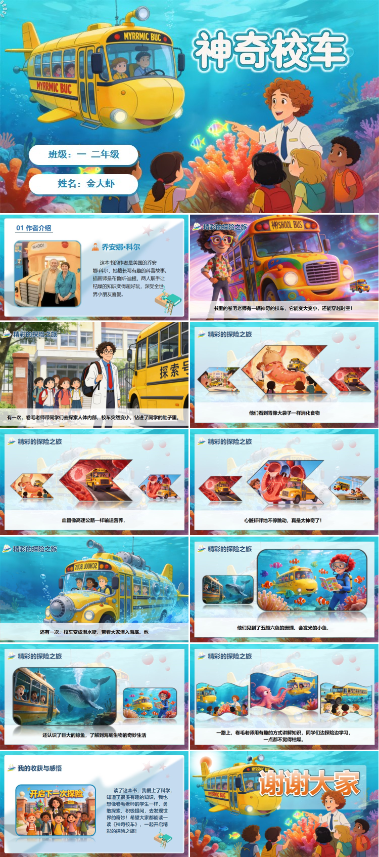 希望大家都能读一读《神奇校车》,一起开启精彩的探险之旅!我的演讲结束了,谢谢大家!