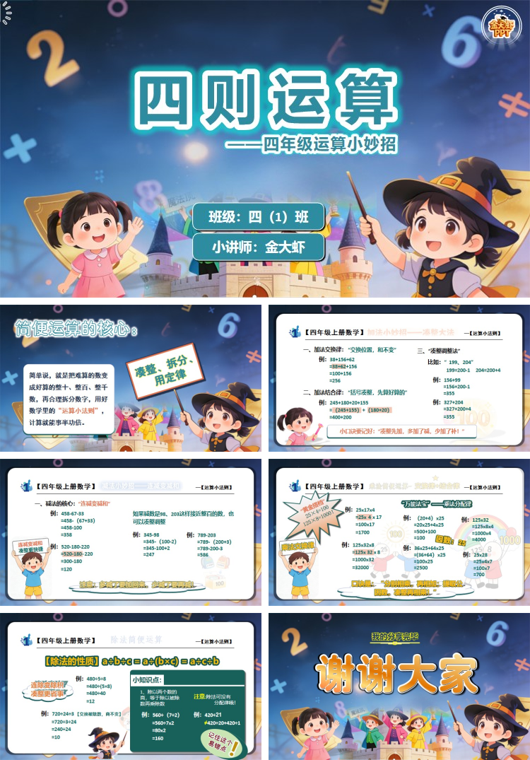 今天我一起学习一个“宝藏技能”——简便运算!有没有同学觉得,数学计算又繁琐又容易出错?尤其是遇到三位数、四位数的加减乘除时,光列竖式就要花好长时间,还总担心算错?其实呀,只要掌握了简便运算的小规律、小技巧,咱们就能像“数学小魔法师”一样,把复杂的算式变简单,算得又快又准!
