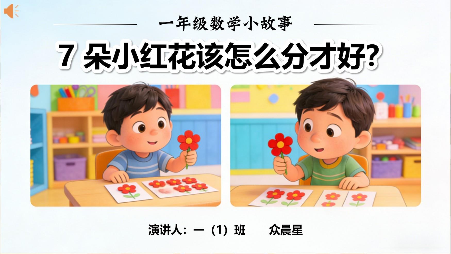 大家好,我是众晨星,今天我和大家分享的数学小故事是《7 朵小红花该怎么分才好?》