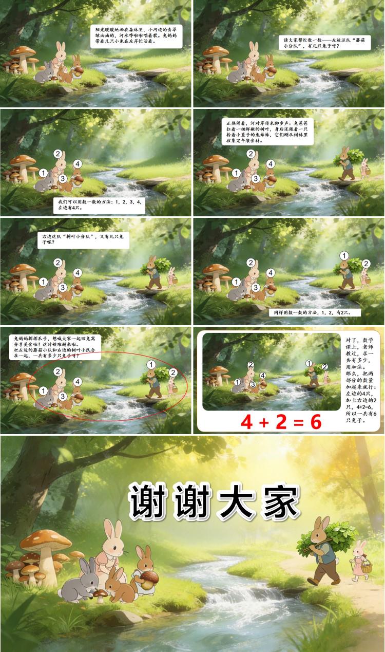 请大家帮忙数一数——左边这队“蘑菇小分队”,有几只兔子呀?