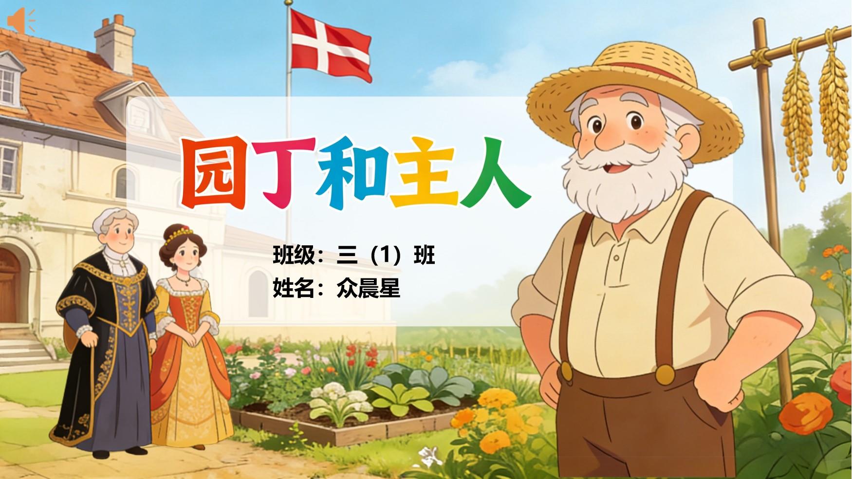大家好,我是三年级一班的众晨星,今天我要和大家分享的是安徒生童话故事中的 ——《园丁和主人》!