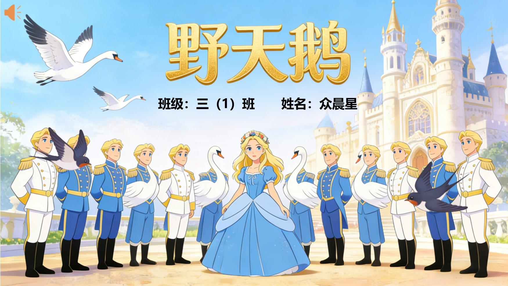大家好,我是三年级一班的众晨星,今天我要和大家分享的是安徒生童话故事中的 ——《野天鹅》。