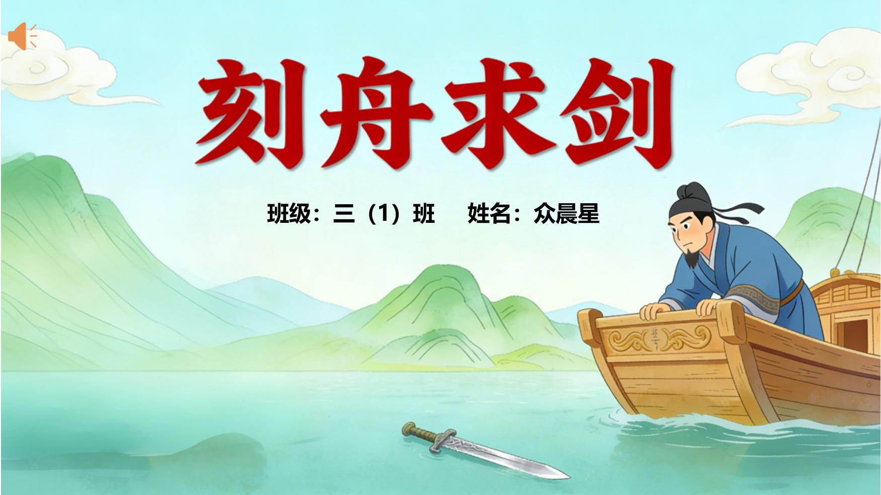 大家好!我是三年级一班的众晨星,今天我要给大家分享的成语故事是《刻舟求剑》。
