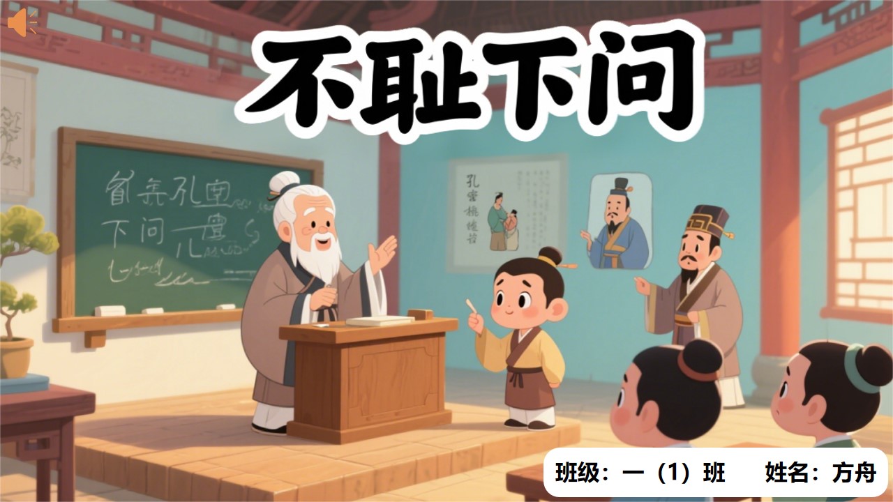同学们,“不耻下问” 这个成语,“不耻” 就是不以为耻辱,“下问” 就是降低身份请教别人。它是说不要因为向比自己学识差或地位低的人去请教就觉得可耻,形容一个人虚心求教。这个故事告诉我们呀,不管我们懂得多少知识,都要有一颗好学的心,遇到不懂的问题,要勇敢地向别人请教,哪怕对方可能不如我们,我们也不能觉得不好意思哦,只有这样,我们才能学到更多的东西,变得越来越聪明!