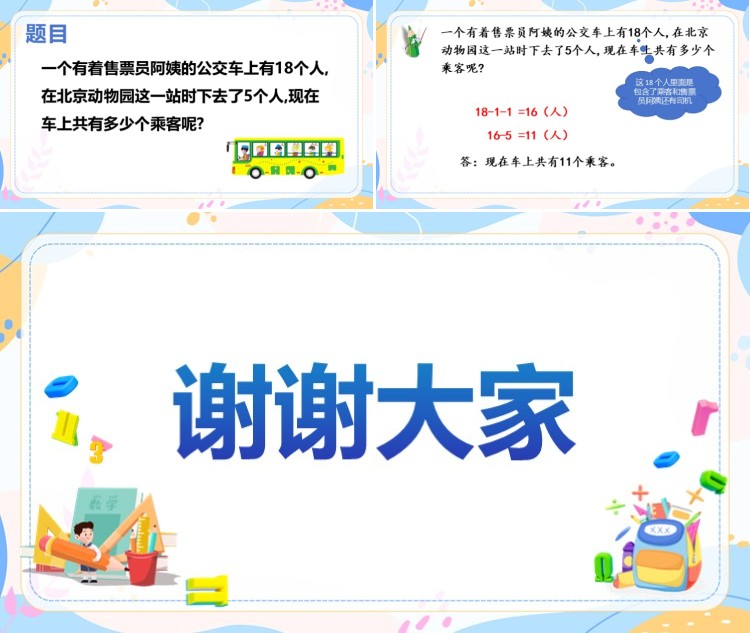 题目是这样的:一个有着售票员阿姨的公交车上有18个人,在北京动物园这一站时下去了5个人,现在车上共有多少个乘客呢?