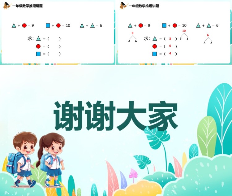 我们的目标是找出三角形、圆圈和正方形分别代表的数字。