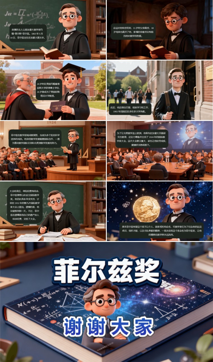 故事的主人公是加拿大数学家约翰・查尔斯・菲尔兹。1863 年 5 月 14 日,菲尔兹出生在加拿大渥太华。命运对他有些苛刻,11 岁时父亲离世,18 岁母亲也离开了他,家境的贫寒并没有阻挡他对数学的热爱。17 岁,他踏入多伦多大学攻读数学,凭借努力,24 岁时在美国约翰霍普金斯大学获得博士学位,26 岁就成为了美国阿勒格尼大学教授。此后,他还前往巴黎、柏林学习和工作,1902 年回国后在多伦多大学执教。