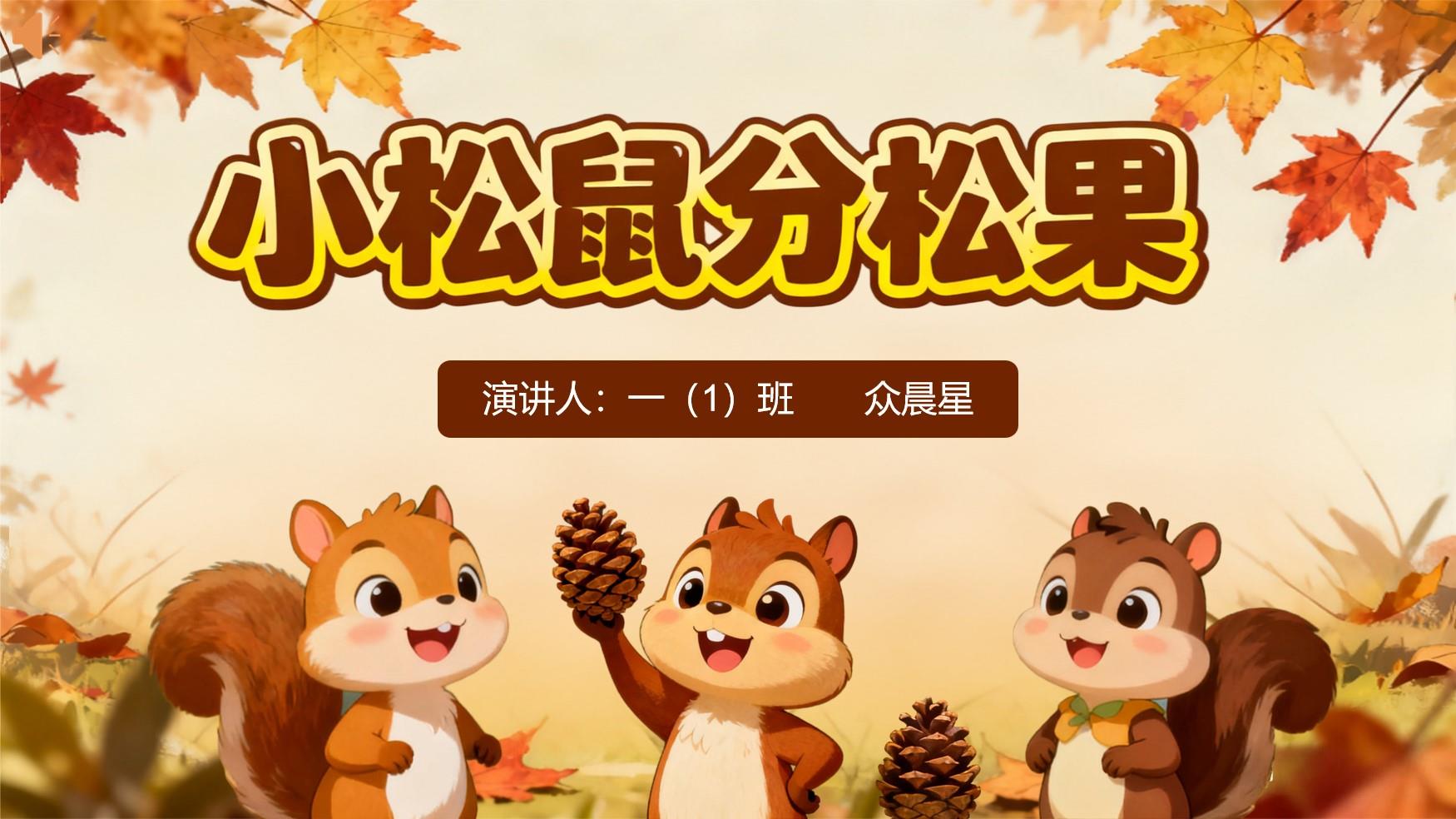 大家好,我是一年级一班的众晨星,今天我大家分享的数学小故事是《小松鼠分松果》,秋天到啦,森林里的小松鼠乐乐摘了10个饱满的松果,准备存起来过冬。它刚把松果摆好,好朋友豆豆就蹦蹦跳跳地跑过来:“乐乐,我只摘到4个松果,不够过冬怎么办呀?”