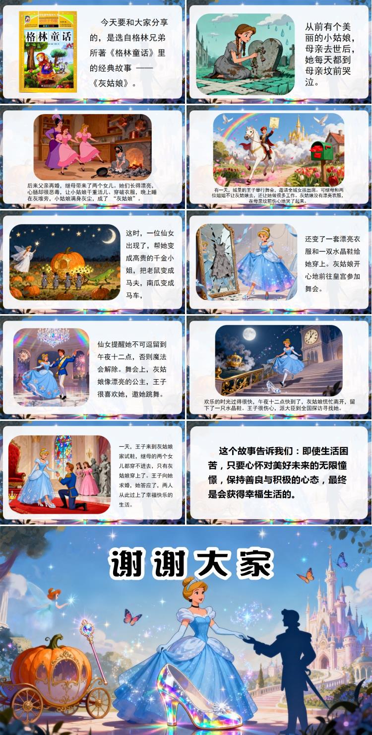 大家好!我是三年级一班的众晨星,今天和大家分享的,是选自格林兄弟所著《格林童话》里的经典故事 ——《灰姑娘》。