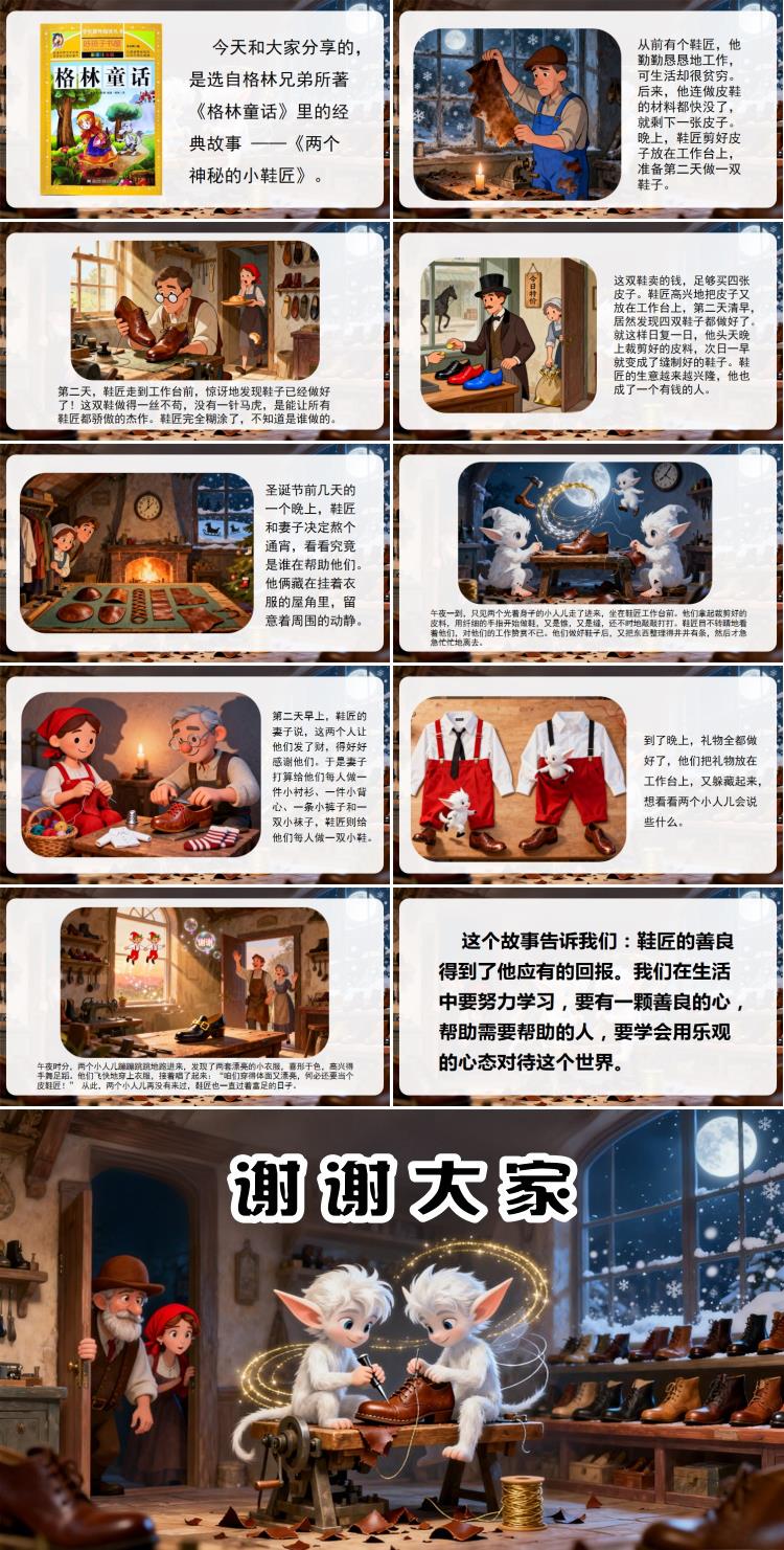 大家好!我是三年级一班的众晨星,今天和大家分享的,是选自格林兄弟所著《格林童话》里的经典故事 ——《两个神秘的小鞋匠》。