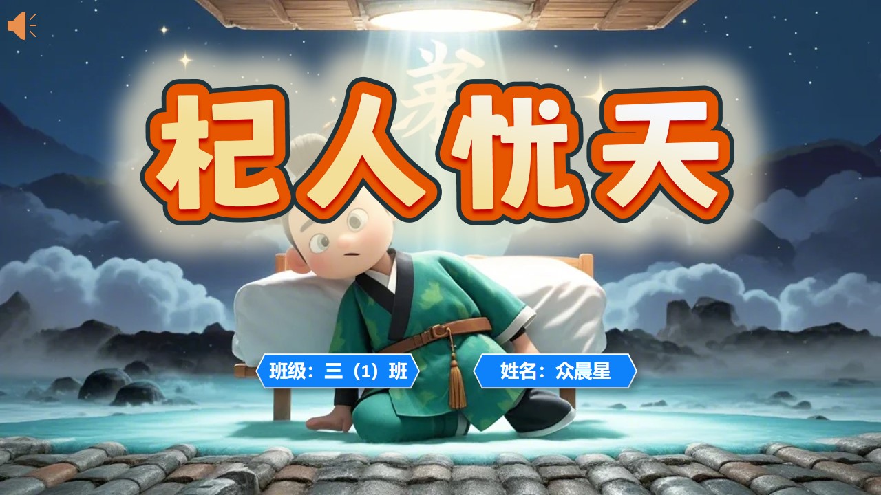 大家好!我是三年级一班的众晨星,今天,我和大家分享的故事是《杞人忧天》。