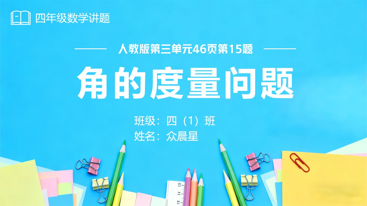 尊敬的老师,亲爱的同学们,大家好!我是四年级1班的众晨星,很高兴和大家一起分享,今天我要和大家分享的是数学书上第46页第15题,题目是这样的:“右面每个图中的∠1与∠2相等吗?说明理由”。