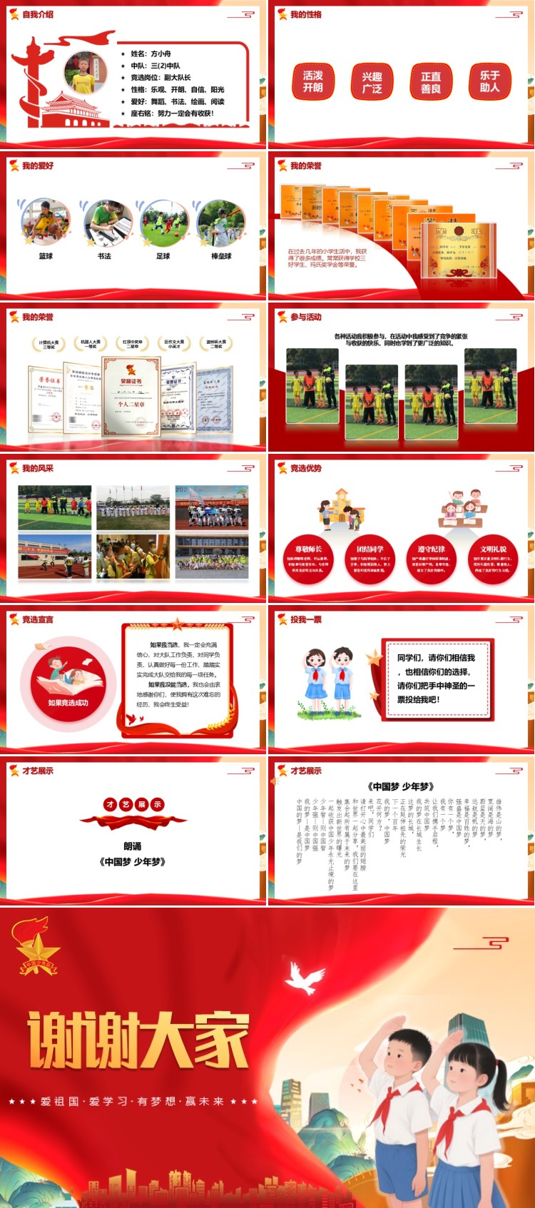 大家中午好!我是三(1)中队的方小舟。今天,我站在这里带着满腔的热情和坚定的信念,参加大队委的竞选,这不仅是一个锻炼自我、挑战自我的机会,更是一个服务大家、共同成长的舞台。