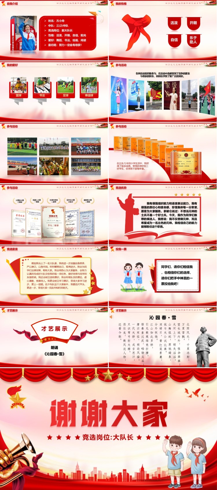 我有很强组织能力和语言表达能力,我有很强的责任心和使命感,珍惜集体每一分荣誉,愿意为大家服务。拿破仑说过:不想当元帅的士兵不是一个好士兵。今天,我作为同学们推荐的候选人,我想说:我不仅想做元帅,而且希望成为一名出色的元帅。我相信自己的能力能够胜任这个职务。