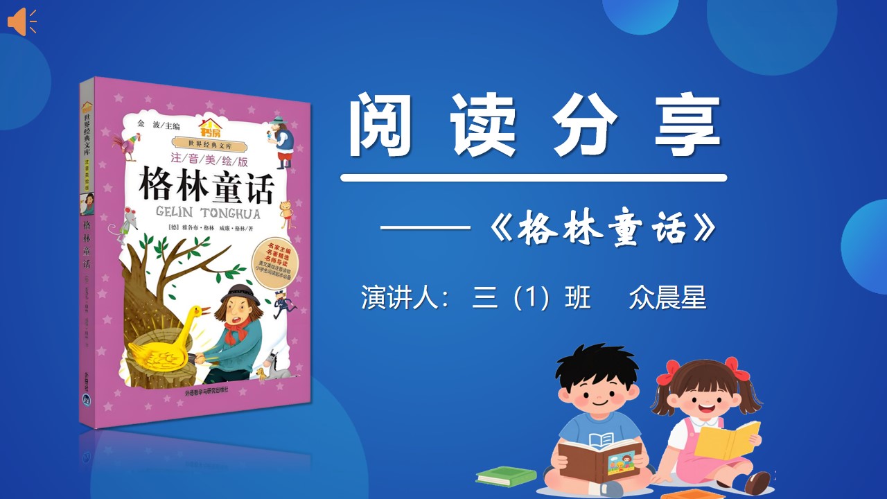 大家好!我是三年级一班的众晨星,高尔基说过:“书籍是人类进步的阶梯。” 今天我要给大家推荐一座装满魔法的 “阶梯”——《格林童话》。这是一本让我读了又读的好书,里面藏着好多精彩的故事和做人的道理。