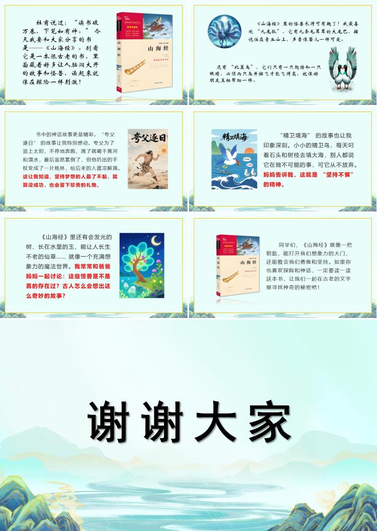 同学们,《山海经》就像一把钥匙,能打开我们想象力的大门,还能教会我们勇敢和坚持。如果你也喜欢探险和神话,一定要读一读这本书,让我们一起在古老的文字里寻找神奇的秘密吧!