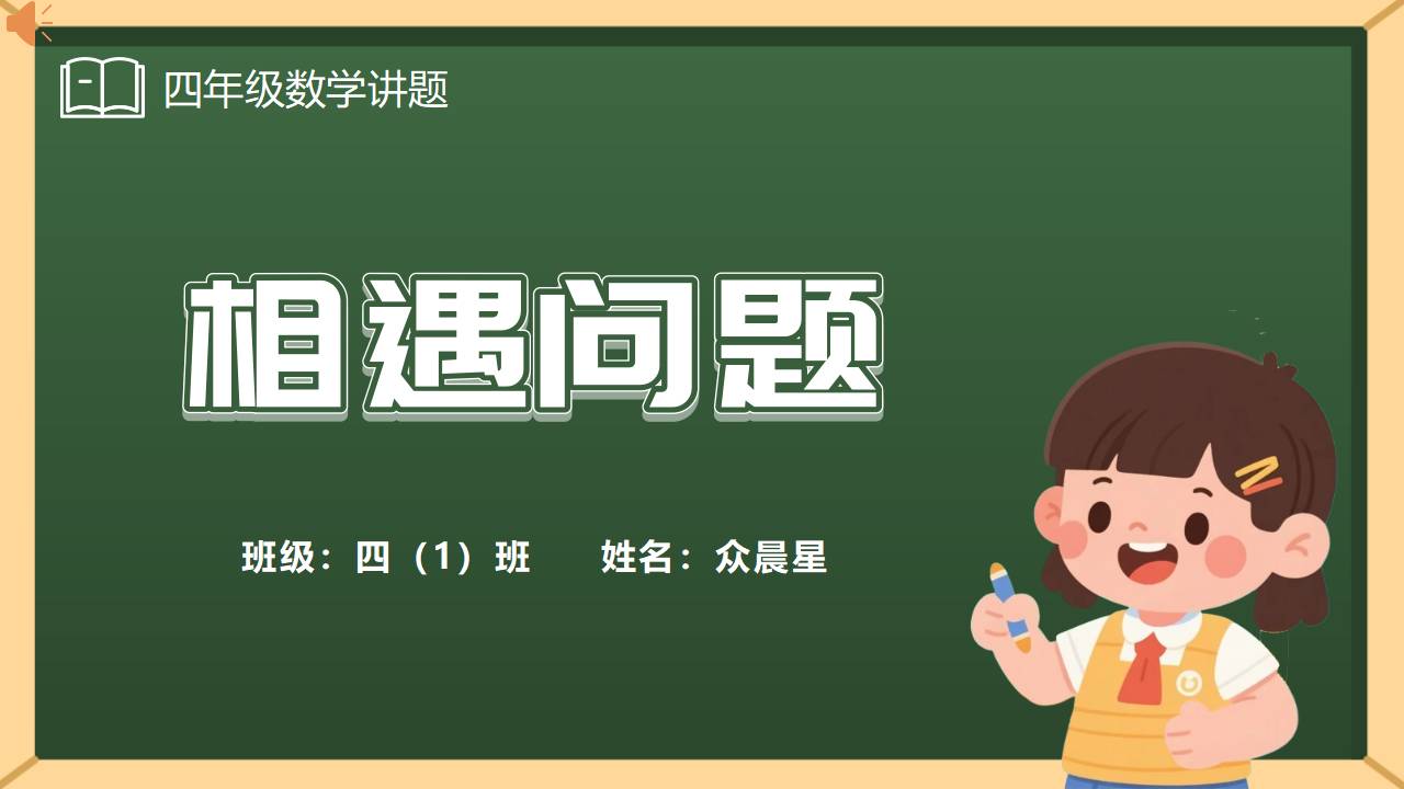 亲爱的同学们,大家好!大家好!我是四年级一班的众晨星,今天我们一起学习一个有趣的数学问题 —— 相遇问题。