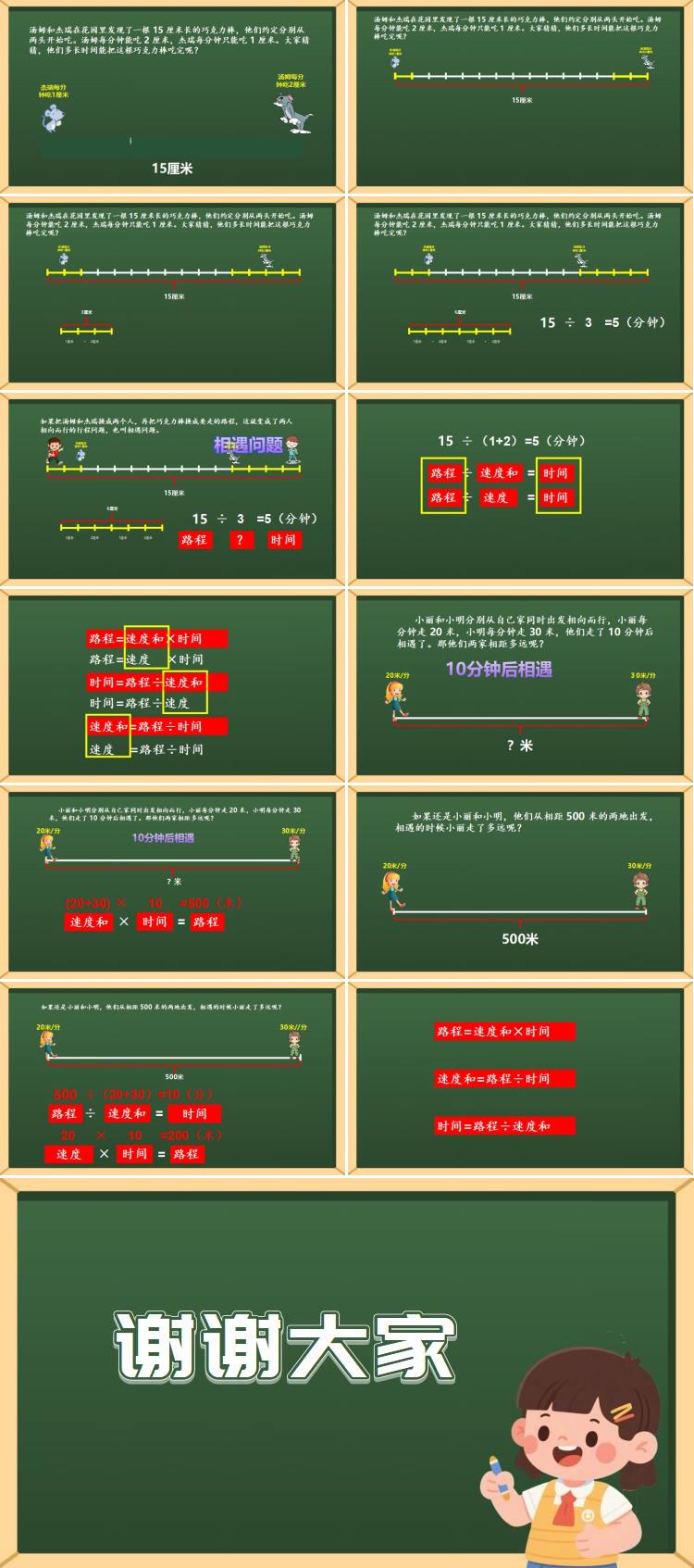同学们,通过这两个例子,相信大家已经掌握相遇问题的解题方法了。只要记住这几个公式,遇到相遇问题就能轻松解决啦!