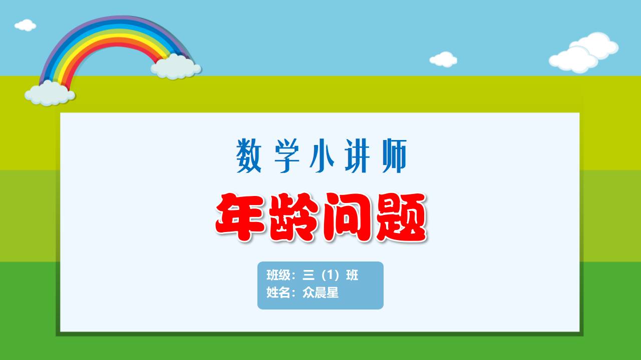 大家好,我是三(1)班的众晨星。今天,我要给大家讲一讲有趣的 “年龄问题”。