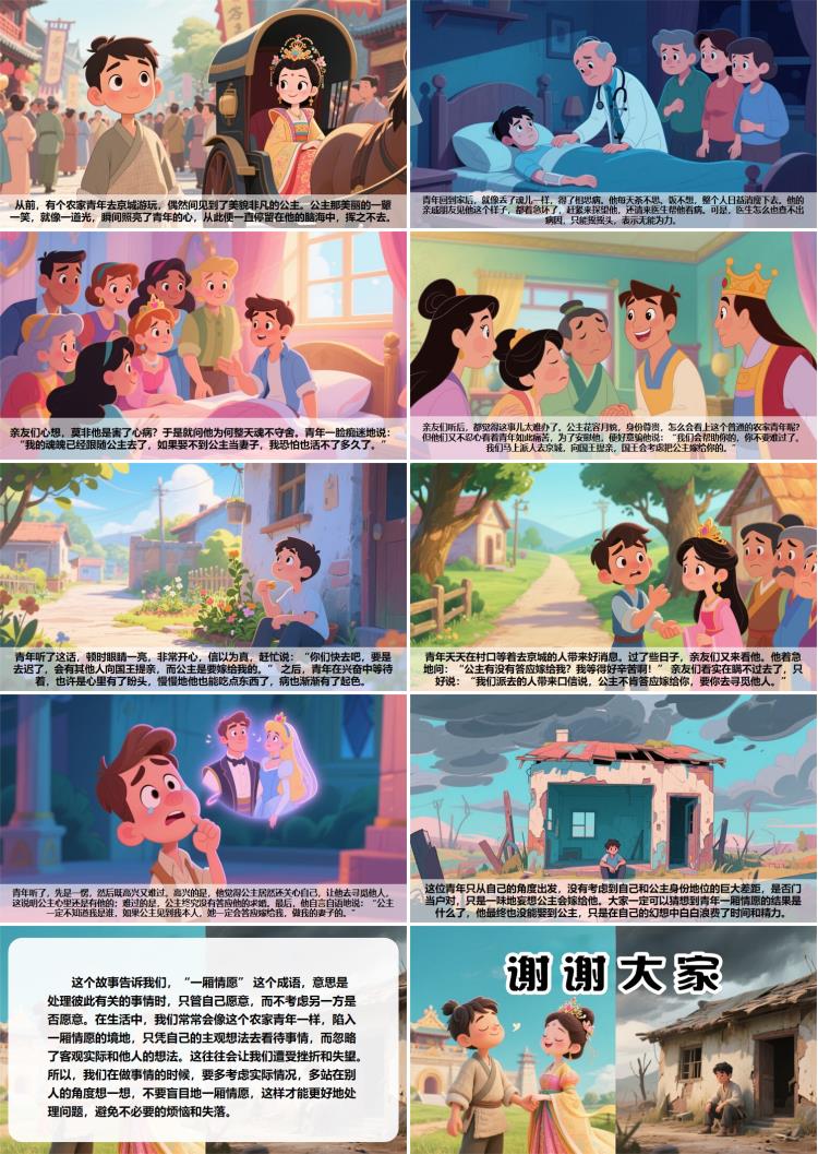 这个故事告诉我们,“一厢情愿” 这个成语,意思是处理彼此有关的事情时,只管自己愿意,而不考虑另一方是否愿意。在生活中,我们常常会像这个农家青年一样,陷入一厢情愿的境地,只凭自己的主观想法去看待事情,而忽略了客观实际和他人的想法。这往往会让我们遭受挫折和失望。所以,我们在做事情的时候,要多考虑实际情况,多站在别人的角度想一想,不要盲目地一厢情愿,这样才能更好地处理问题,避免不必要的烦恼和失落。