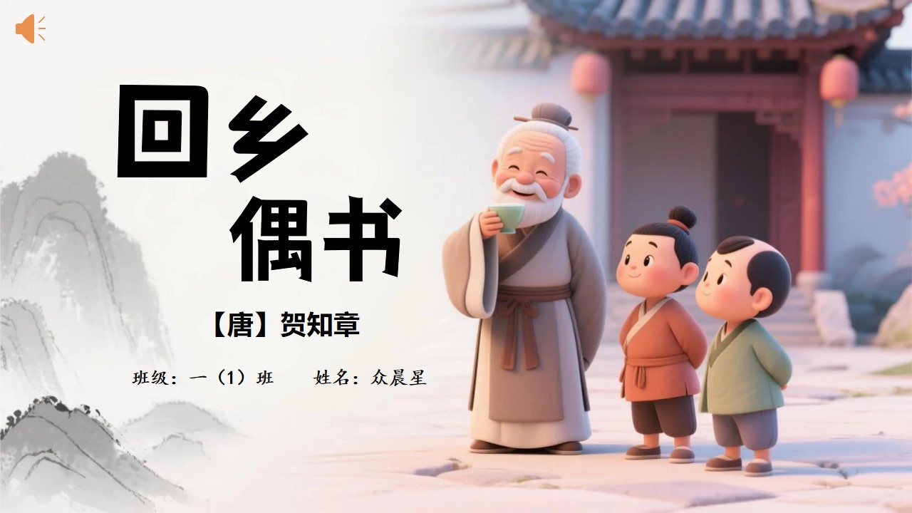 大家好,我是一年级一班的众晨星,今天我和大家分享的是《回乡偶书》,作者贺知章,