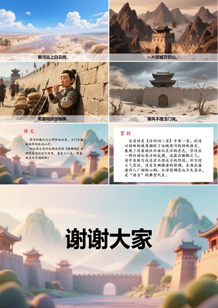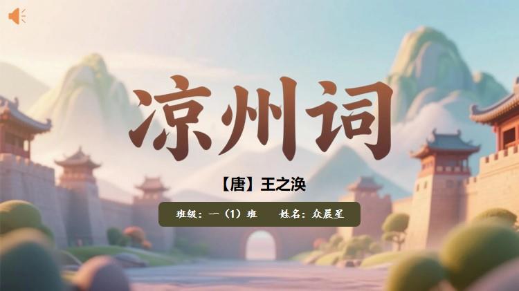 大家好,我是一年级一班的众晨星,今天我和大家分享的是《凉州词》,作者王之涣,