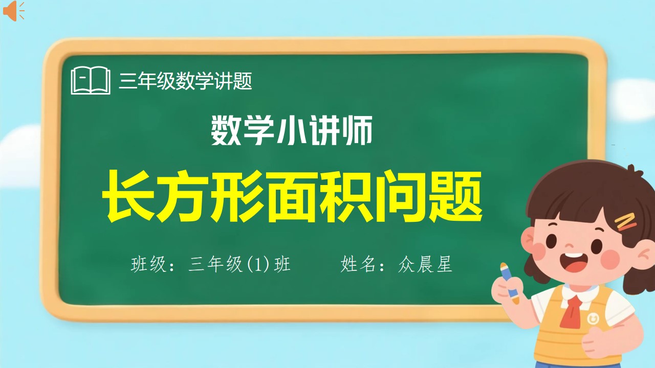 尊敬的老师,亲爱的同学们,大家好!我是三年级一班的众晨星,今天我们一起来看一道有趣的长方形面积的题目。