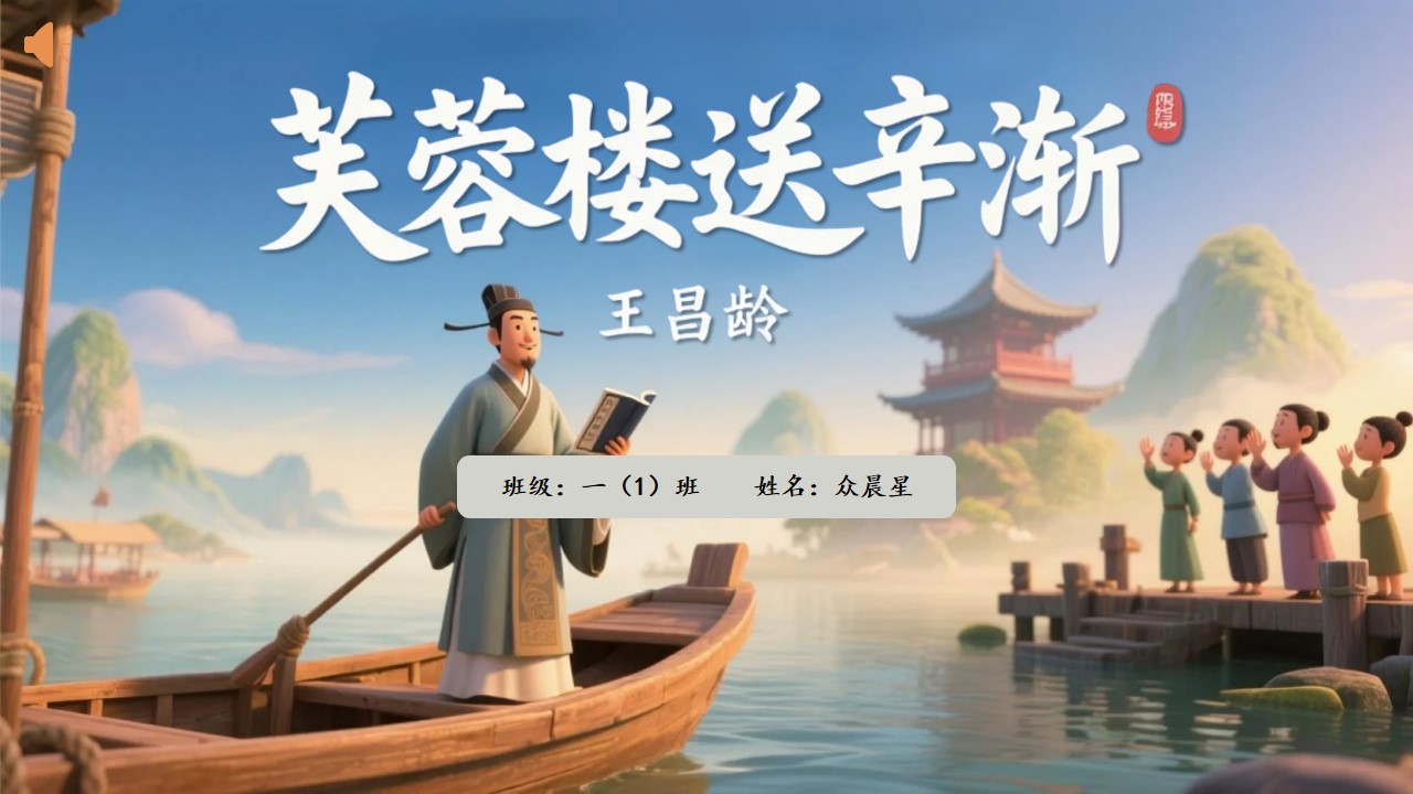 大家好,我是一年级一班的众晨星,今天我和大家分享的是《芙蓉楼送辛渐》,作者王昌龄,