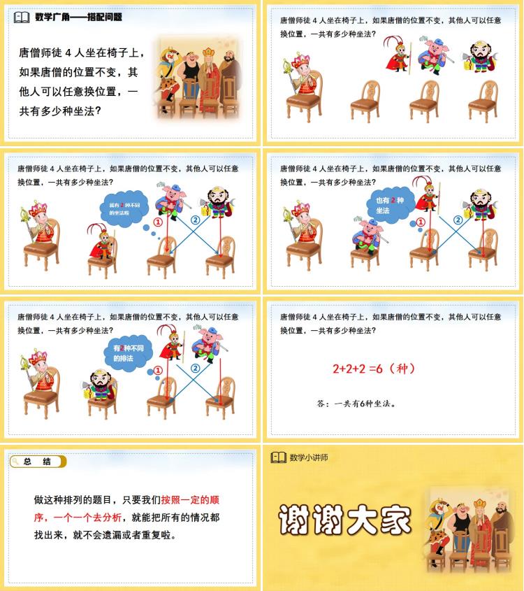 我们来分析一下:因为唐僧的位置固定不动啦,那其实就是要给悟空、八戒和沙僧这三个人排座位呢。