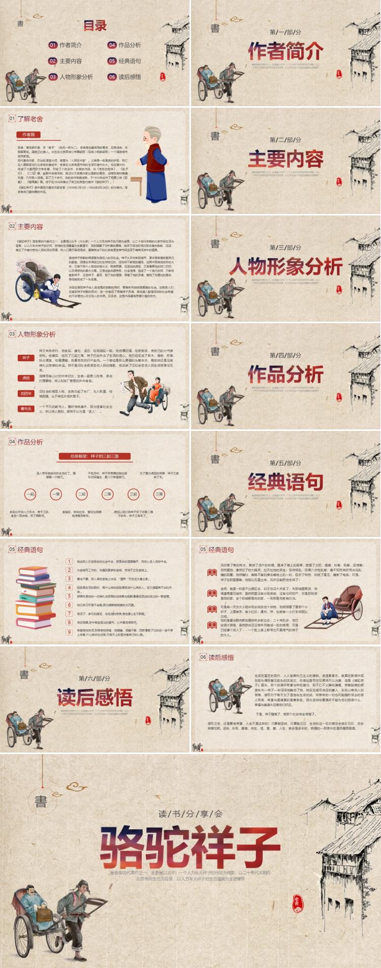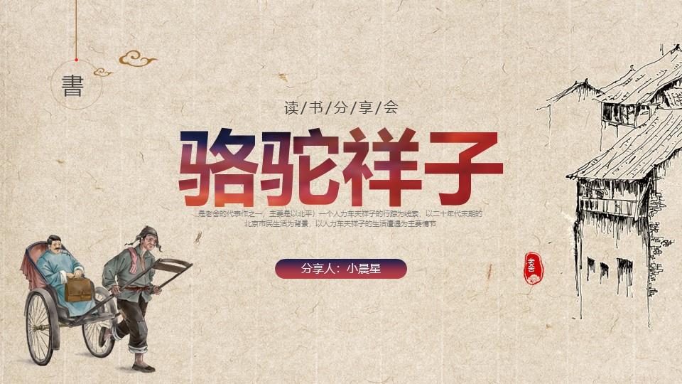 众晨星PPT首页 > 读书分享 > 4-00039 《骆驼祥子》黄色中国风读书分享