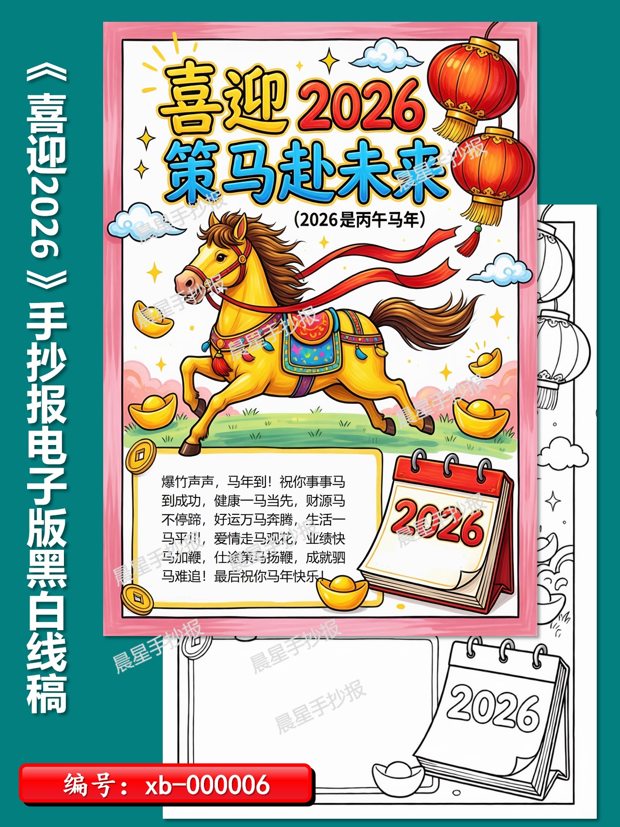 众晨星PPT首页 > 小报/手抄报 > Xb-000006 喜迎 2026 策马赴未来 竖版