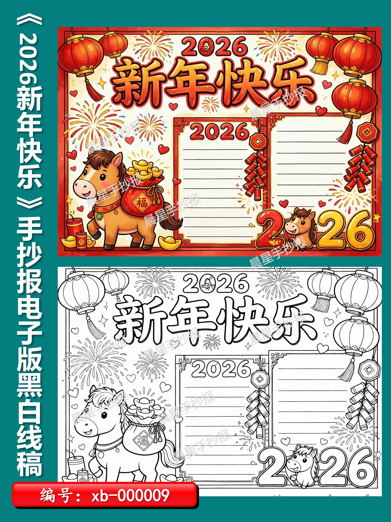 众晨星PPT首页 > 小报/手抄报 > Xb-000009 2026 新年快乐 横版