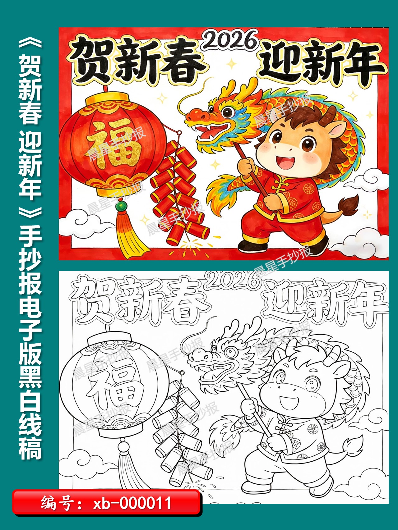 Xb-000011 贺新春 迎新年 横版