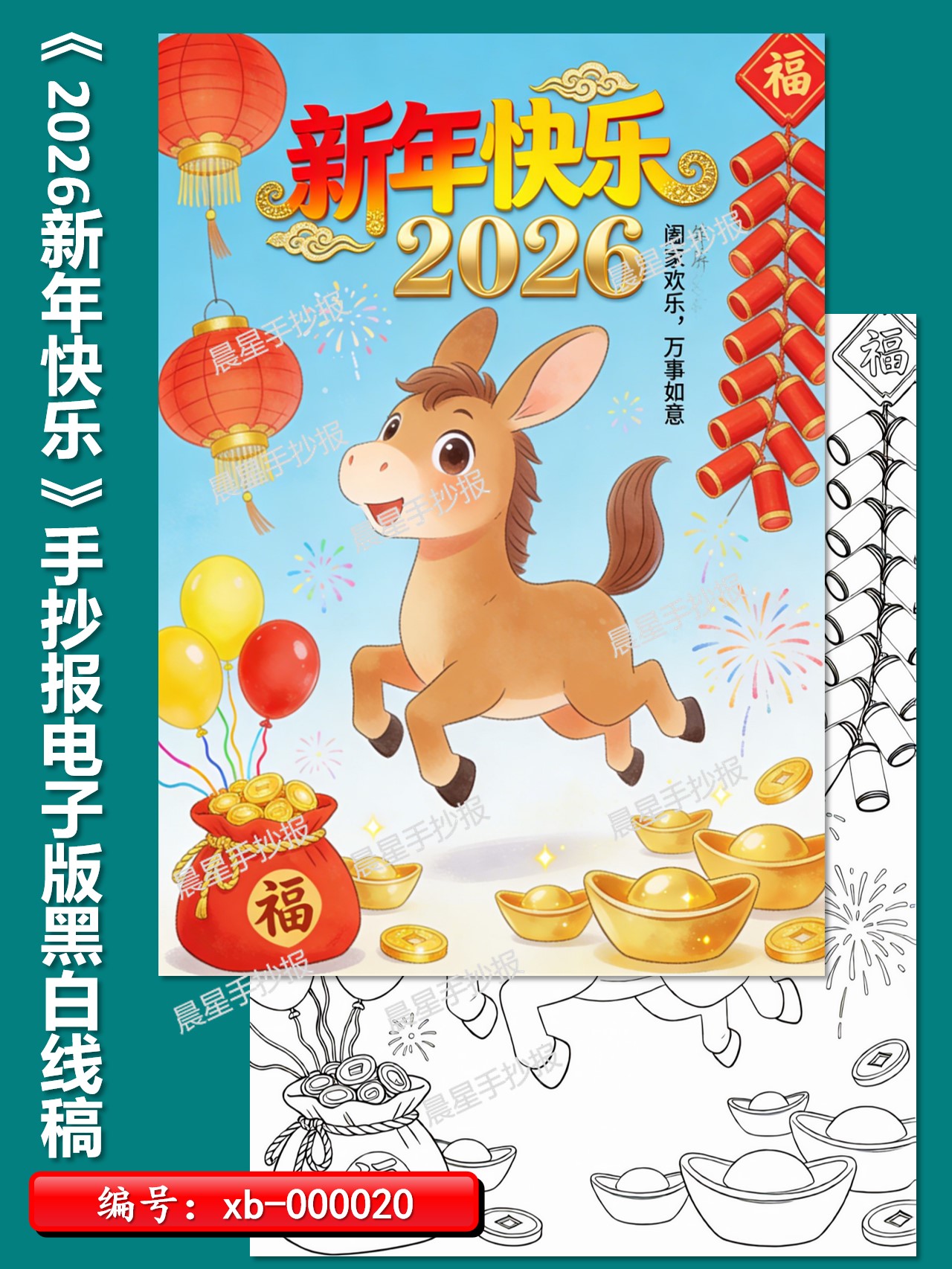 众晨星PPT首页 > 小报/手抄报 > Xb-000020 2026新年快乐 竖版