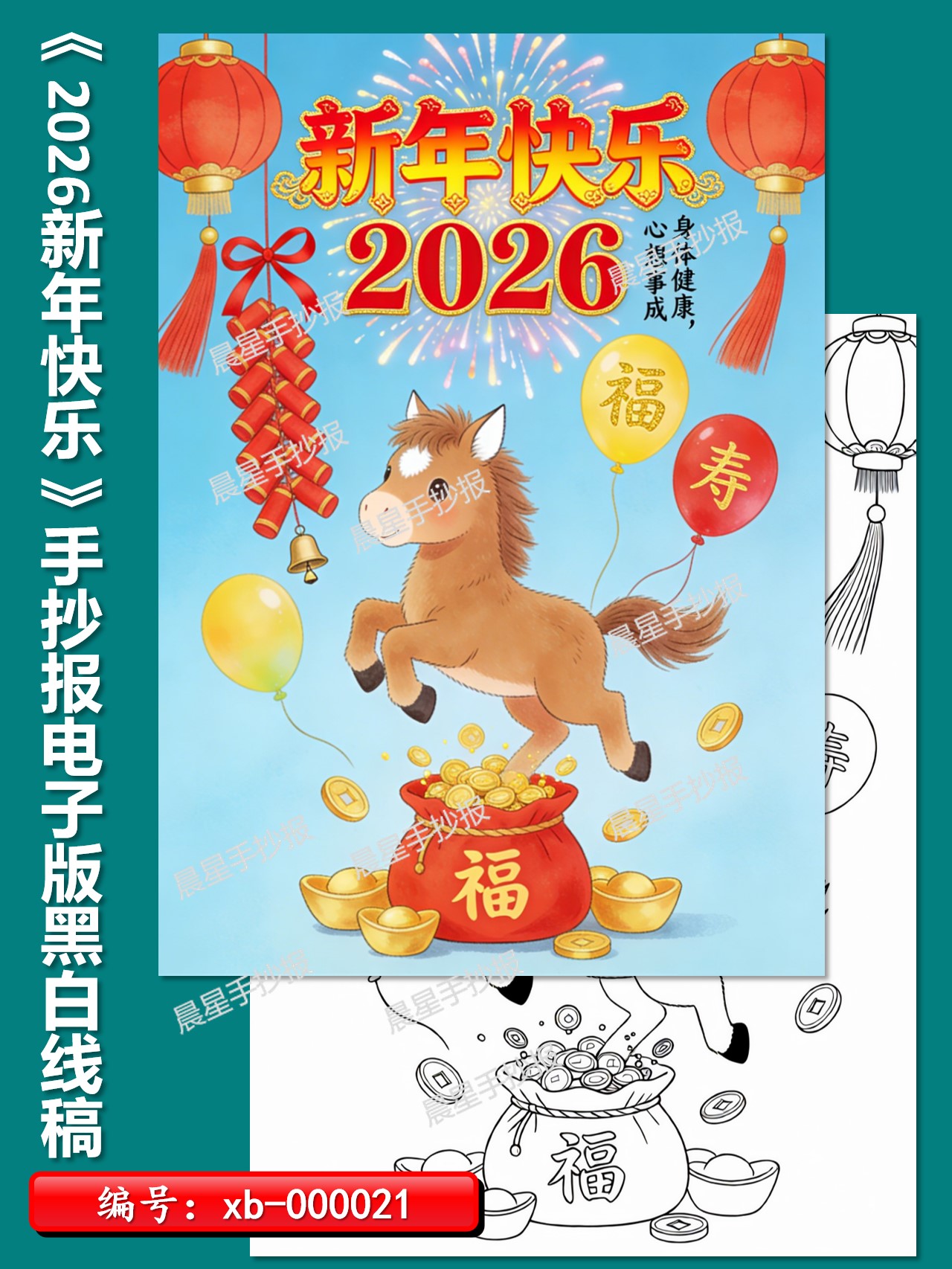 众晨星PPT首页 > 小报/手抄报 > Xb-000021 2026新年快乐 竖版