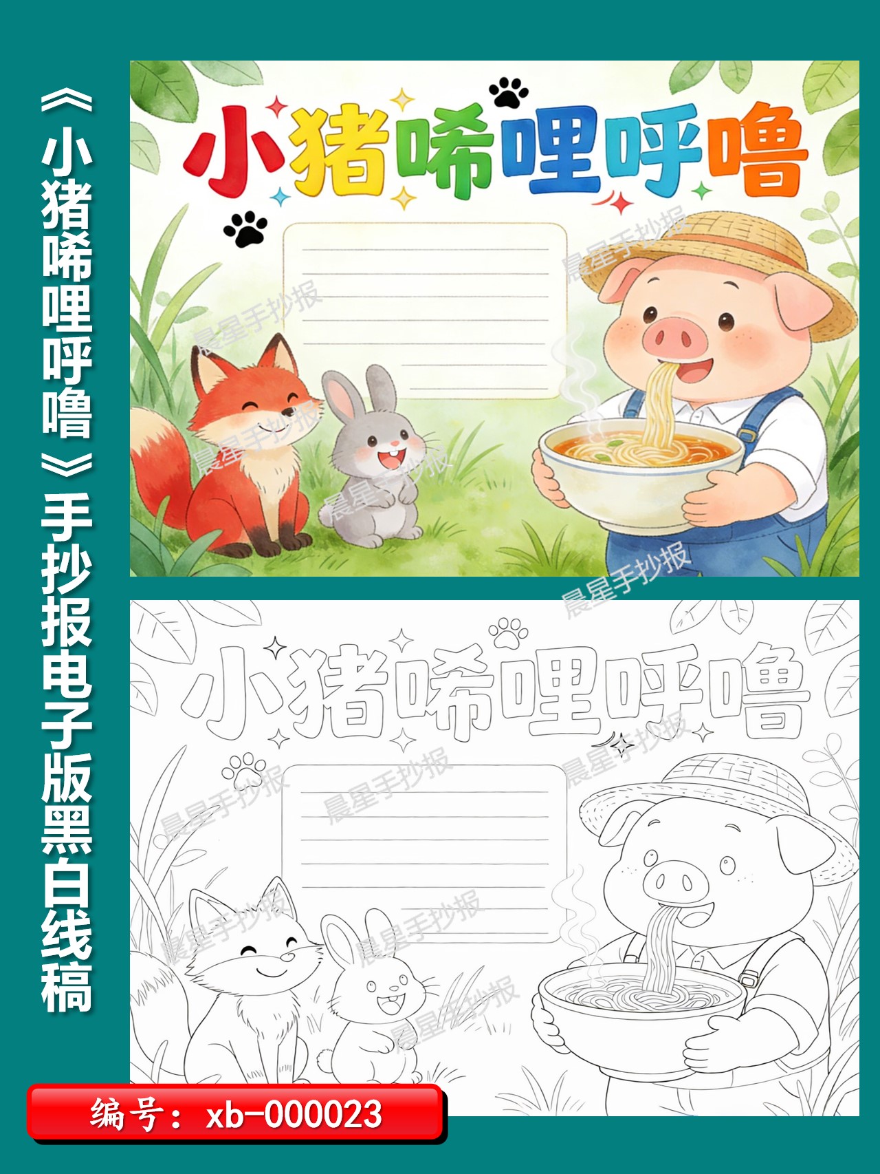 Xb-000023 《小猪唏哩呼噜》阅读分享手抄报