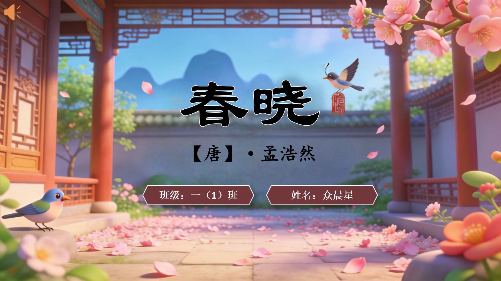 大家好,我是众晨星,今天我和大家分享的是《春晓》