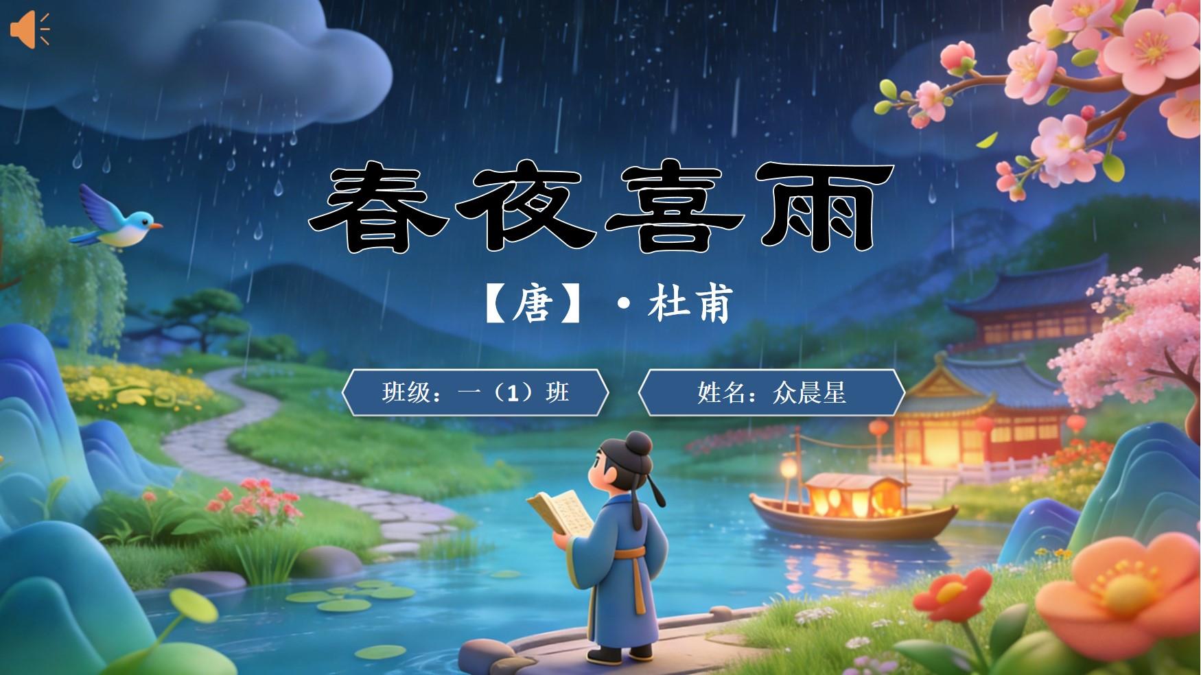 大家好,我是众晨星,今天我和大家分享的是《春夜喜雨》