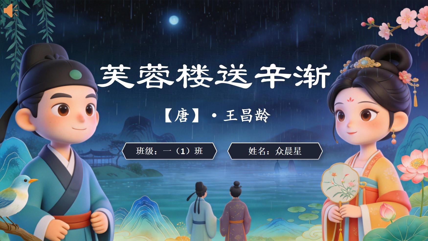 大家好,我是众晨星,今天我和大家分享的是《芙蓉楼送辛渐》