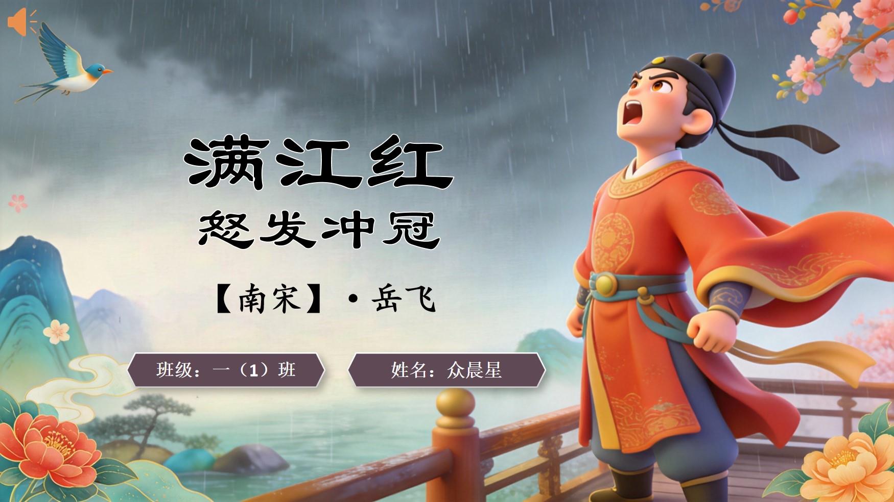 大家好,我是众晨星,今天我和大家分享的是《满江红·怒发冲冠》