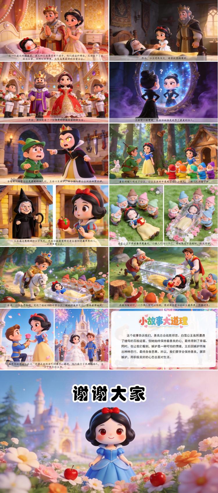 这个故事告诉我们,善良总会战胜邪恶。白雪公主虽然遭遇了继母的百般迫害,但她始终保持着善良的心,最终得到了幸福。同时,也让我们看到,嫉妒是一种可怕的情绪,王后因嫉妒而做出种种恶行,最终自食恶果。所以,我们要学会保持善良,摒弃嫉妒,用积极美好的心态去面对生活。
