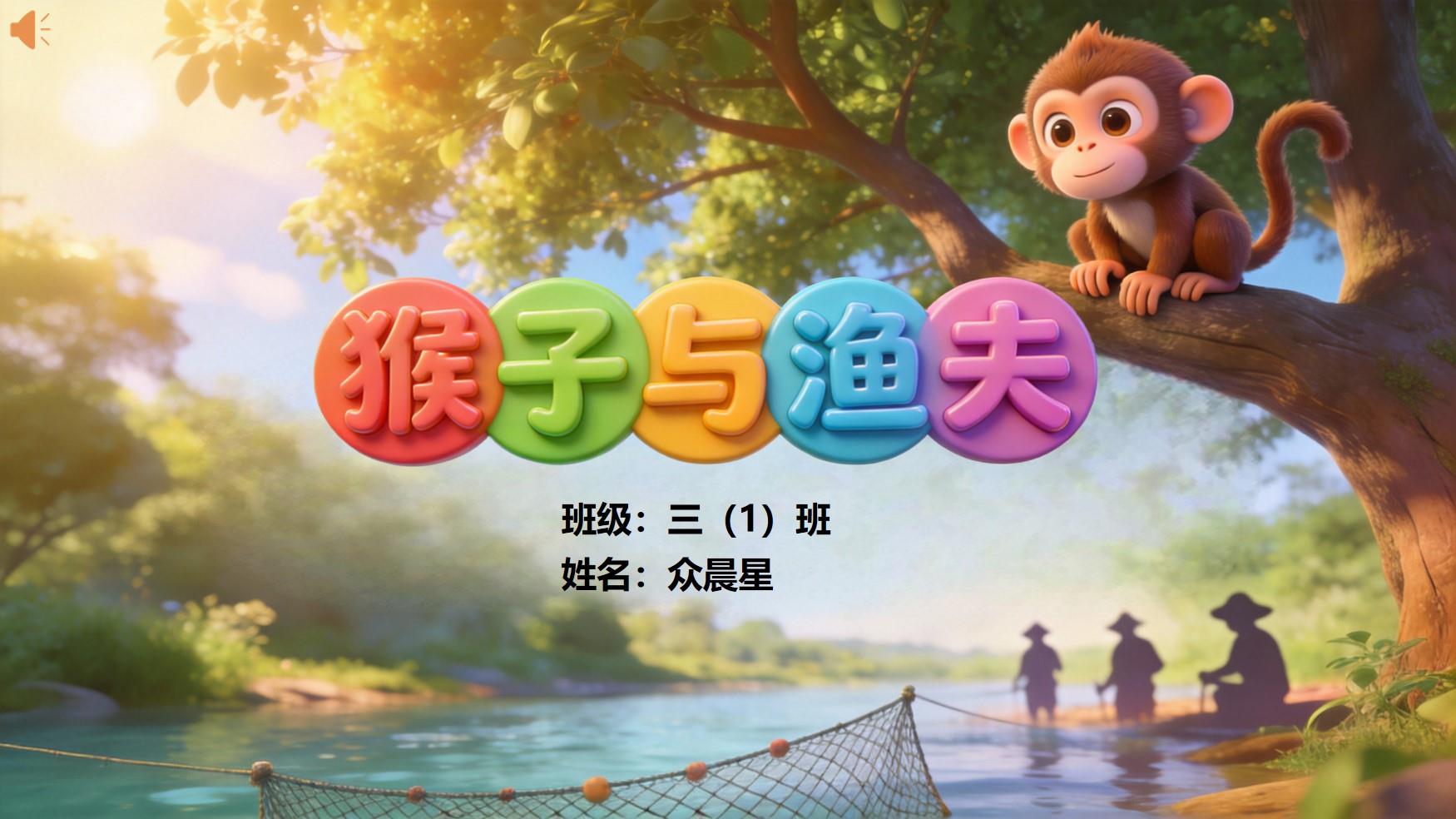 大家好!我是二年级一班的众晨星,今天我要和大家分享一个有趣又有道理的寓言故事 ——《猴子与渔夫》。