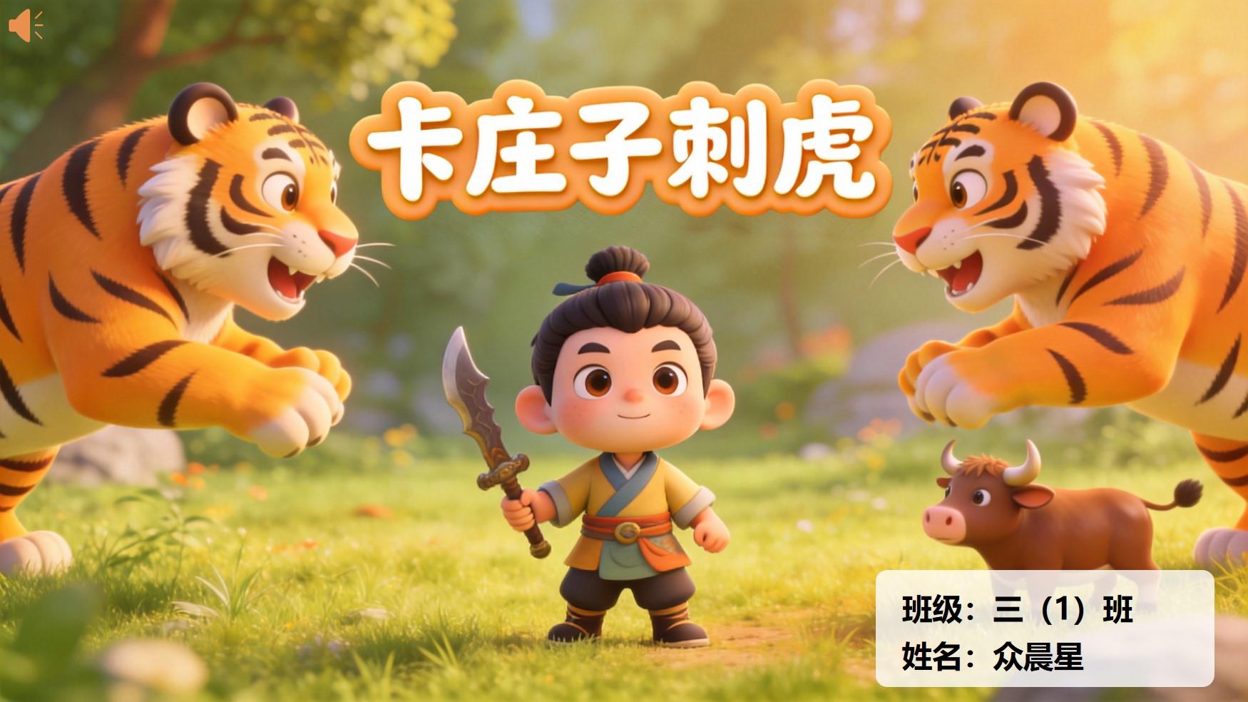 大家好!我是三年级一班的众晨星,今天我要给大家讲一个充满智慧的古代寓言故事,名字叫《卞庄子刺虎》。