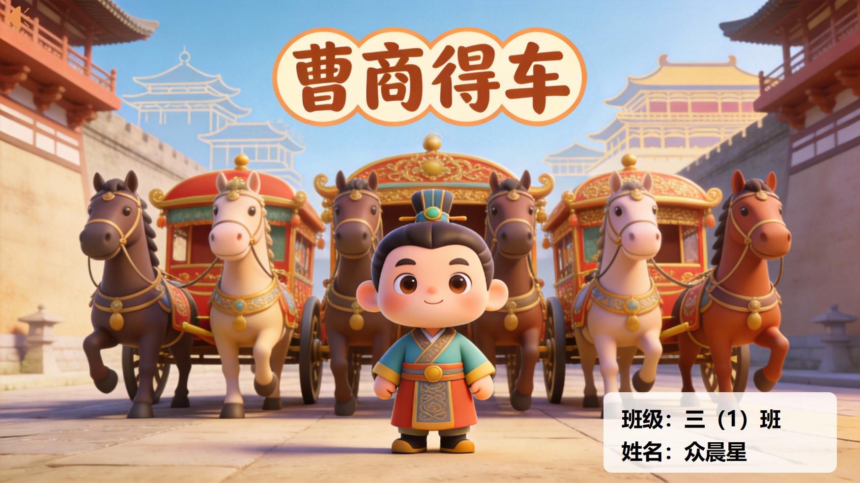 今天我给大家讲的是一个充满讽刺意味的寓言故事 ——《曹商得车》。