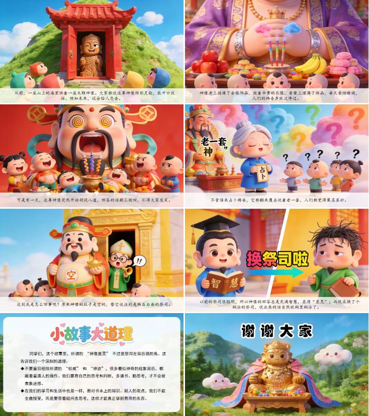 同学们,这个故事里,所谓的 “神像显灵” 不过是祭司在背后搞的鬼。这告诉我们一个深刻的道理: