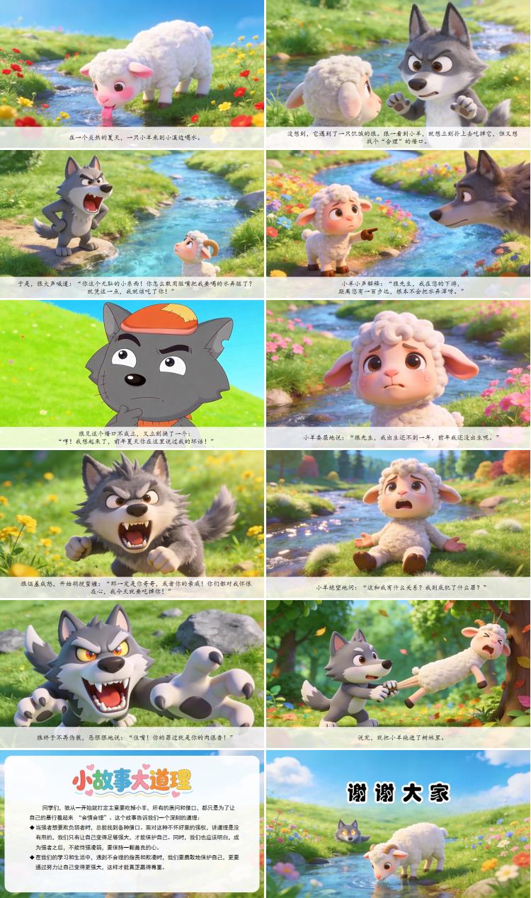 同学们,狼从一开始就打定主意要吃掉小羊,所有的质问和借口,都只是为了让自己的暴行看起来“合情合理”。这个故事告诉我们一个深刻的道理: